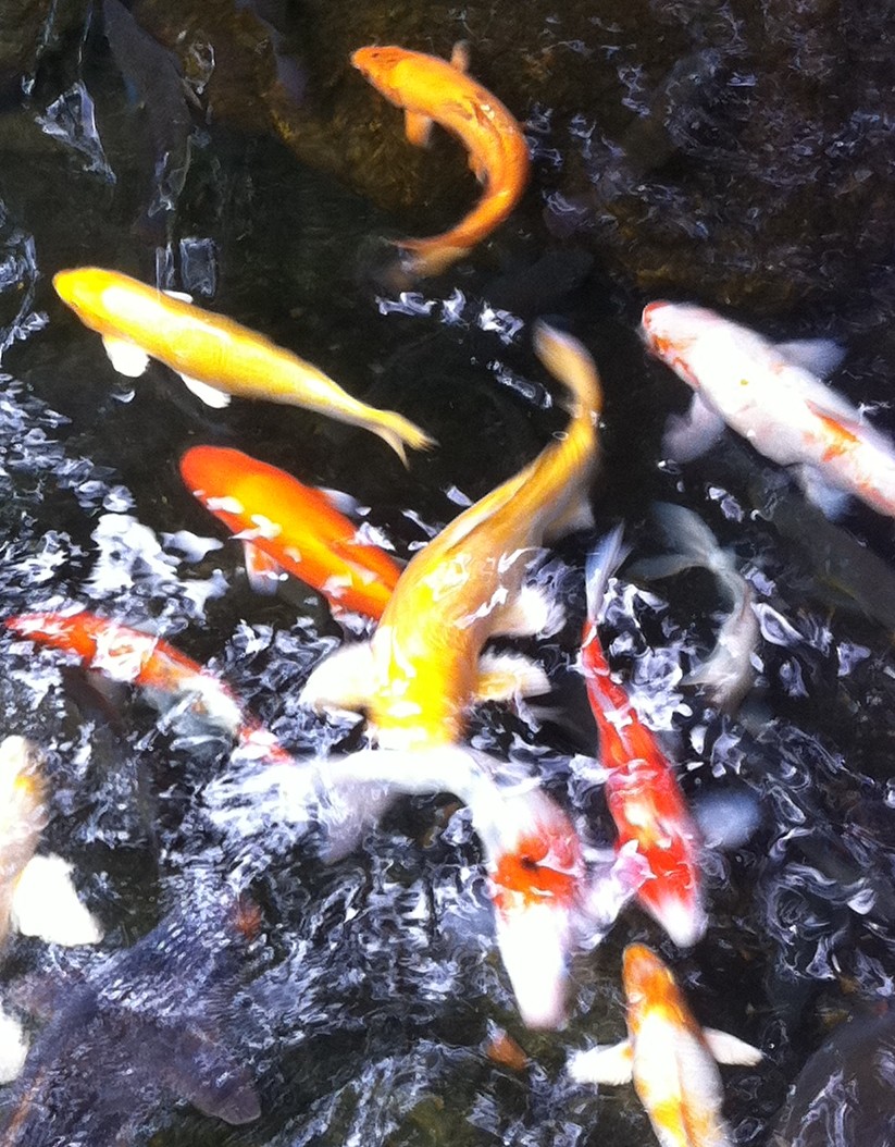 2. To make it easy for yourself, take a design from a magazine, or print a shape out and use that as your main stencil. I free-handed three different fish from pictures I took from the pond.